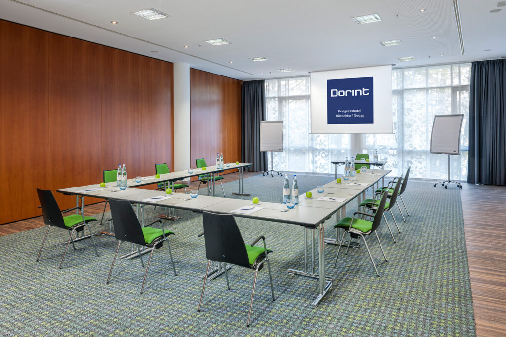 Weitere Konferenzräume im angrenzenden Dorint Kongresshotel Düsseldorf/Neuss am Rosengarten.